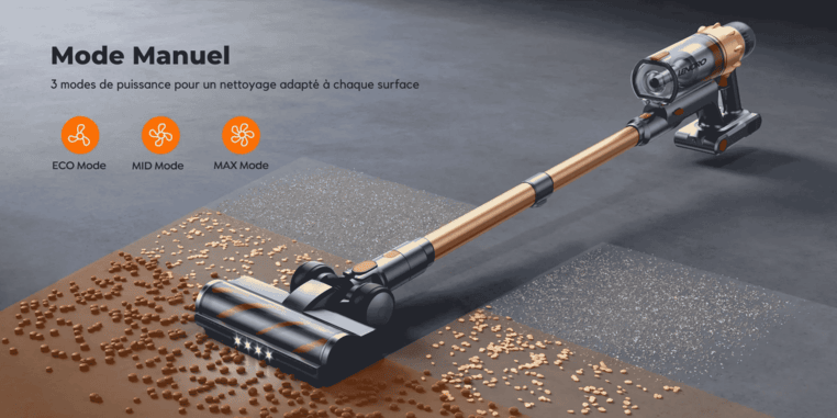 Assez puissant pour faire briller toute la maison en une seule charge : 60 minutes en mode ECO, 35 minutes en mode Standard et 25 minutes en mode Max.