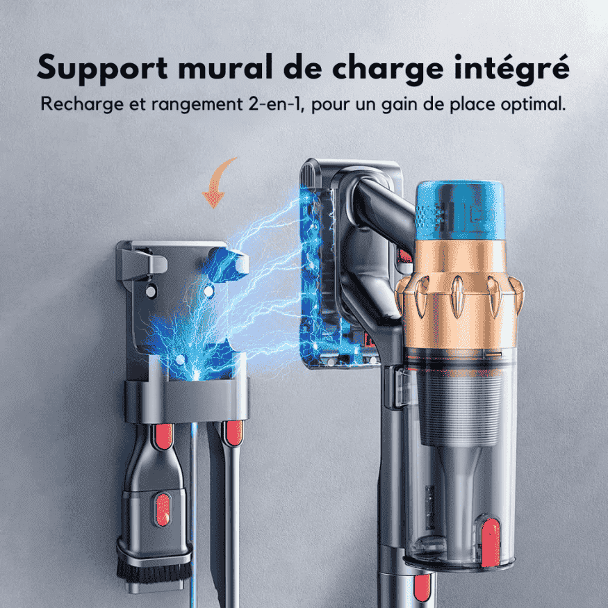 Gardez votre intérieur organisé et sans encombrement grâce au support mural 2-en-1 du Q12. Cette solution pratique vous permet de recharger votre aspirateur tout en rangeant soigneusement tous ses accessoires au même endroit.
