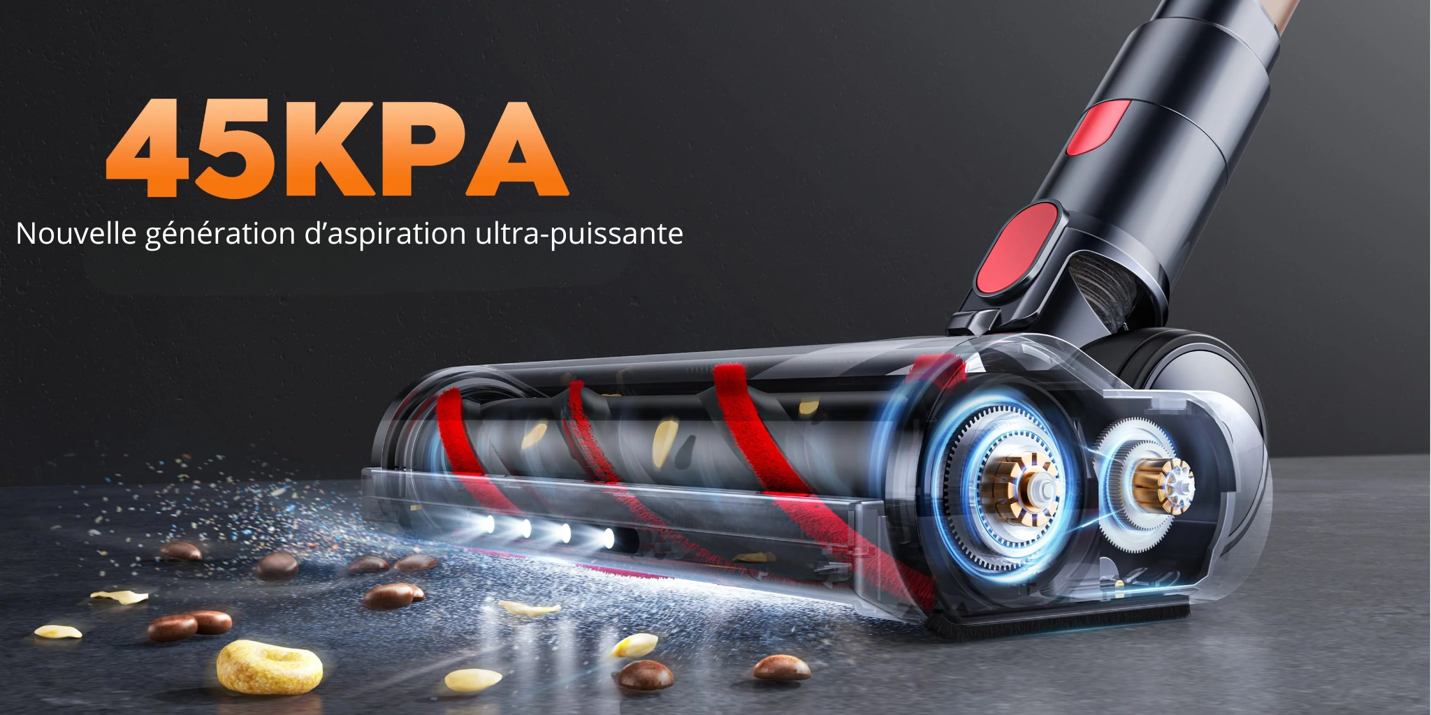 Puissance d’aspiration ultra-puissante de 45 KPA – inégalée sur le marché.