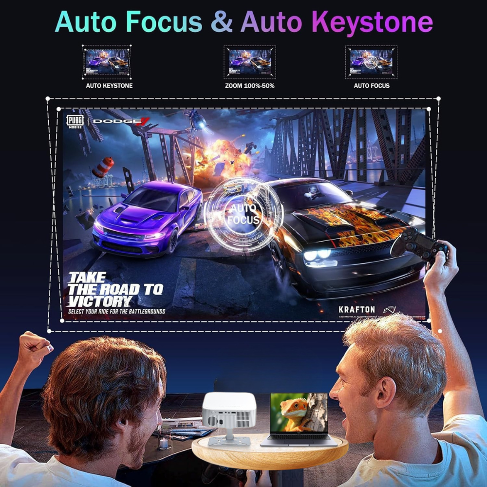 Le Lenoro fait tout pour vous : sa mise au point automatique et sa correction auto-keystone ajustent instantanément la netteté et l’alignement, peu importe la position du projecteur. Installez-le sur le côté, au plafond ou sur une table — l’image sera toujours parfaitement cadrée. Et grâce à la fonction zoom 100 % à 50 %, vous adaptez la taille de l’écran sans bouger le projecteur. L’idéal pour une soirée cinéma à la maison ou une présentation professionnelle sans stress.